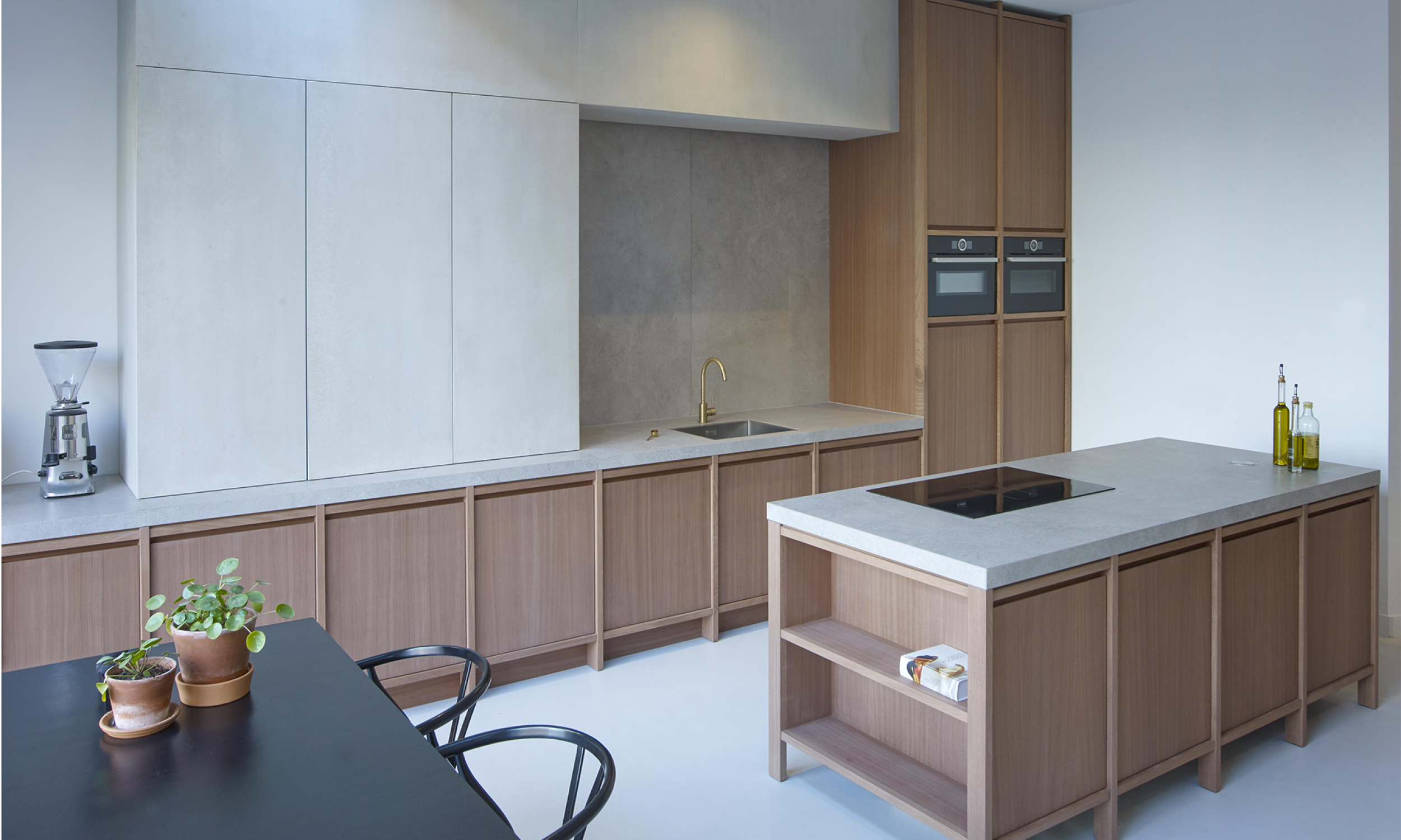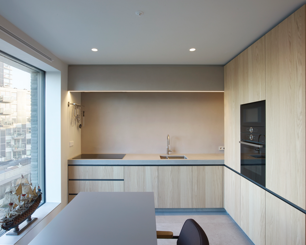 The interior of Amstelblocket forms a natural extension of its architectural concept. It is a space where form and function intertwine in balance — creating a home that feels both open and intimate. Natural materials, soft tones, and filtered light enhance the sense of warmth and connection. The layout flows seamlessly, offering openness while maintaining a feeling of comfort and privacy.