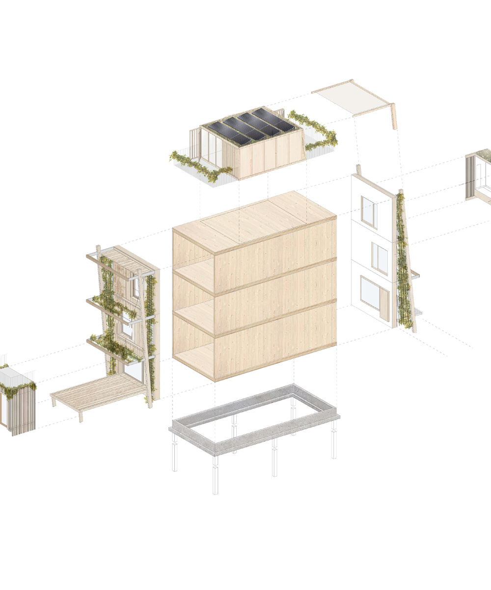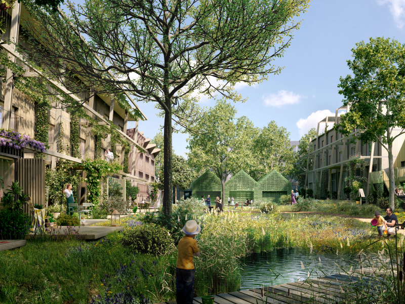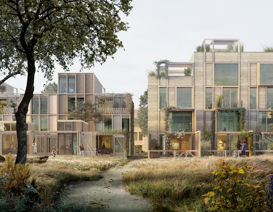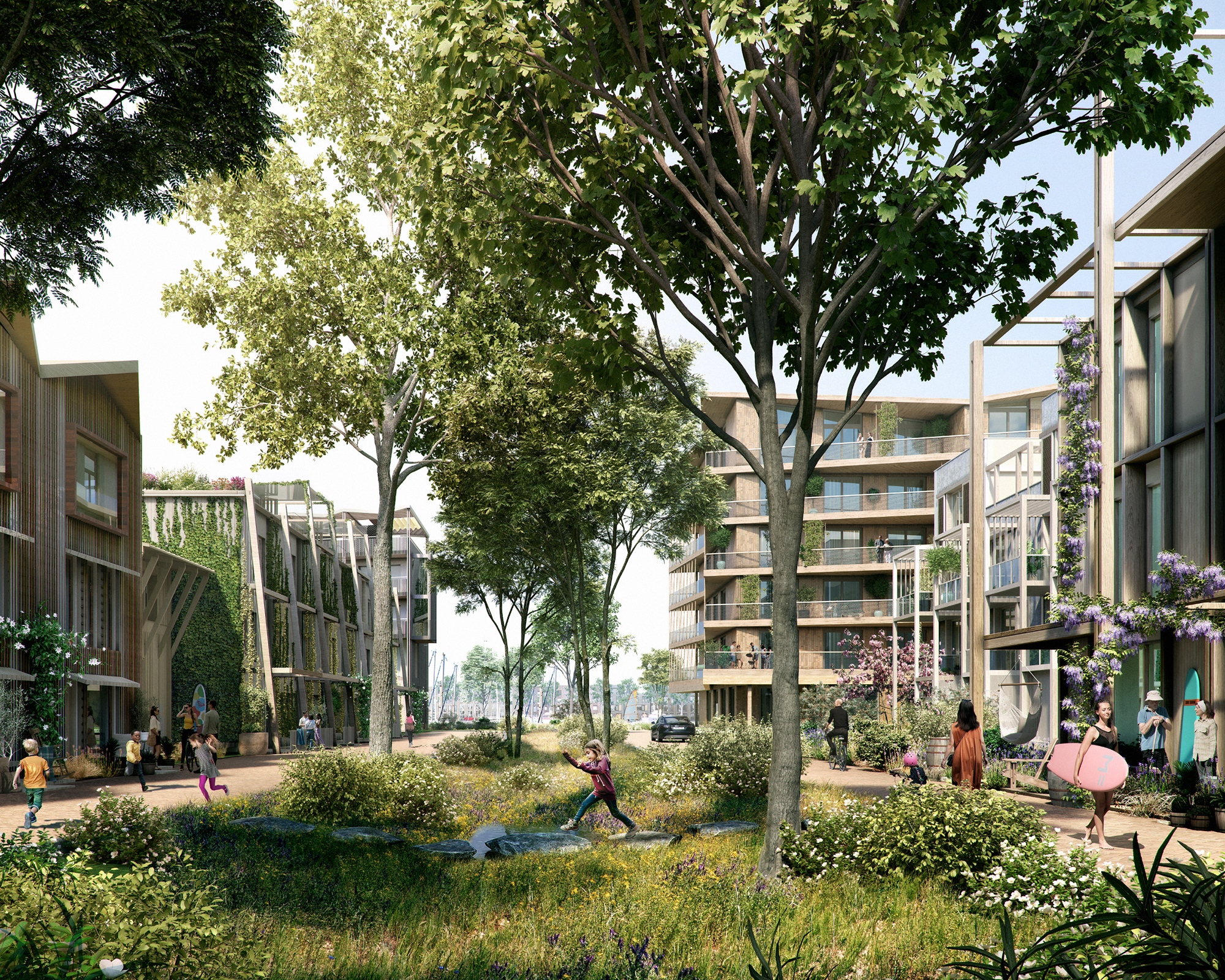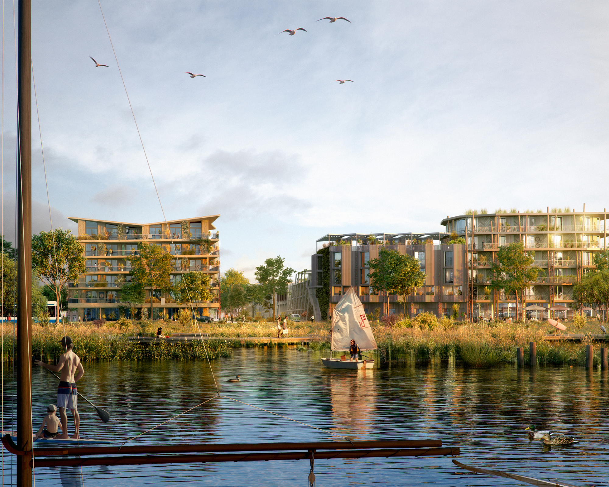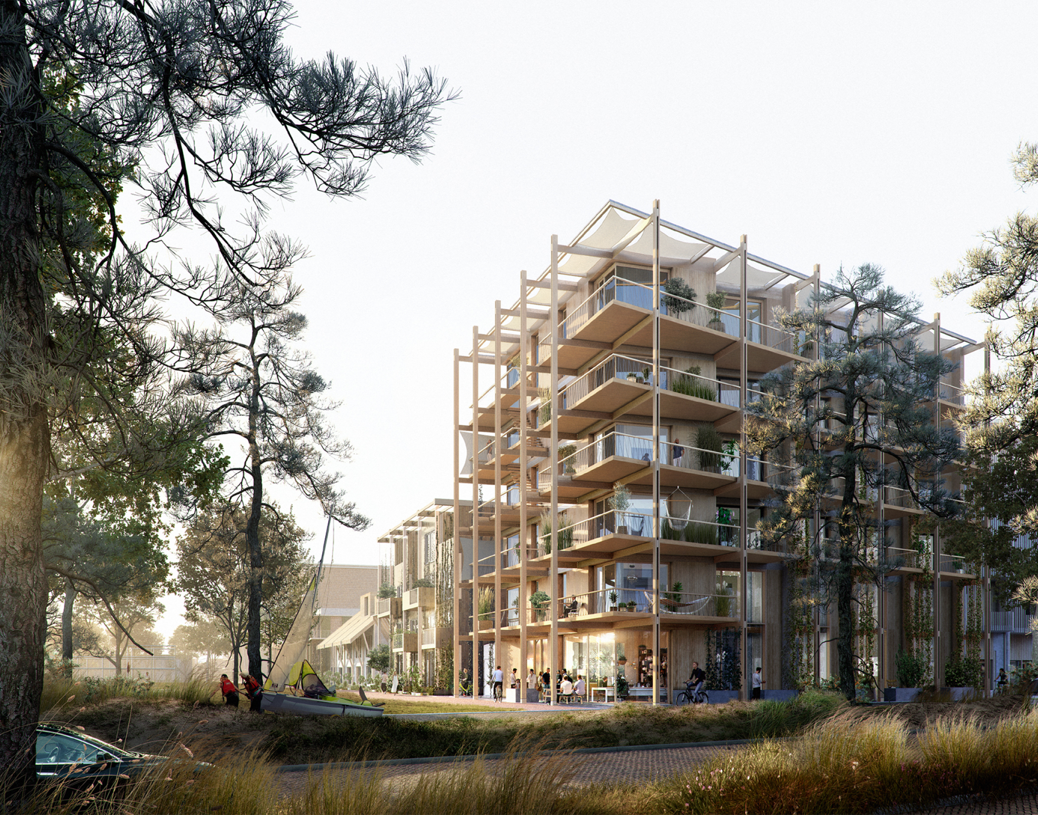 The urban plan developed by the municipality of Amsterdam for this newest part of IJburg has been enhanced with a variety of walkable landscapes; the different gradients give rise to a wide range of architectural styles. The built environment seamlessly integrates living spaces, outdoor areas, and gathering spots. Thanks to the parametrically designed layout, spatial quality, program diversity, building typologies, energy requirements, material use, and green/natural elements are all harmoniously aligned.