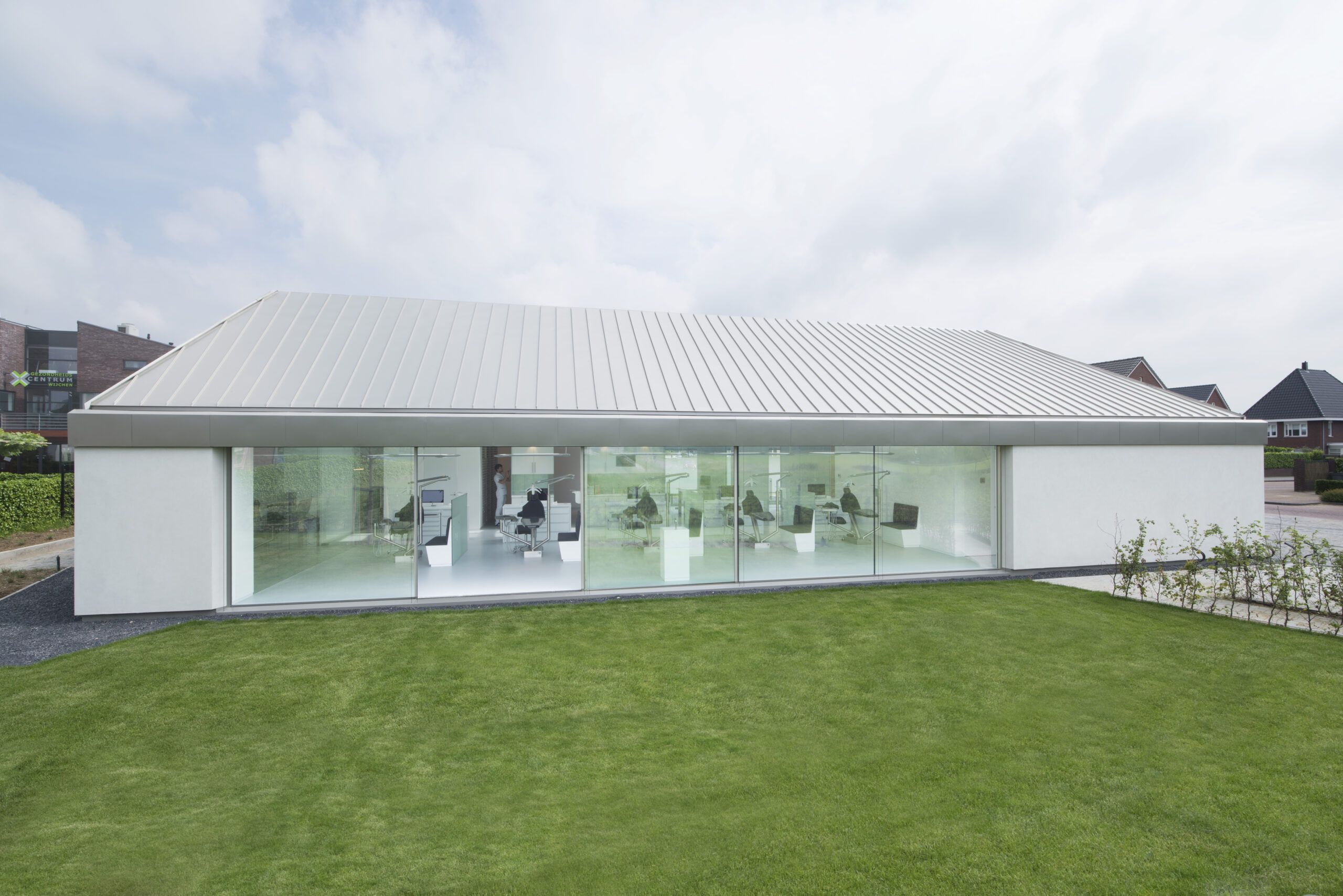 Studio PROTOTYPE has designed a new orthodontic clinic as part of the urban development plan by Kuiper Compagnons. Ortho Wijchen functions both spatially and programmatically as a ‘cornerstone’ of the neighborhood. Within this part of the district, various functions come together, forming a shared cluster for the new development. The distinctive sculptural form, combined with the positioning and diagonal lines of the design, creates an open and accessible character.