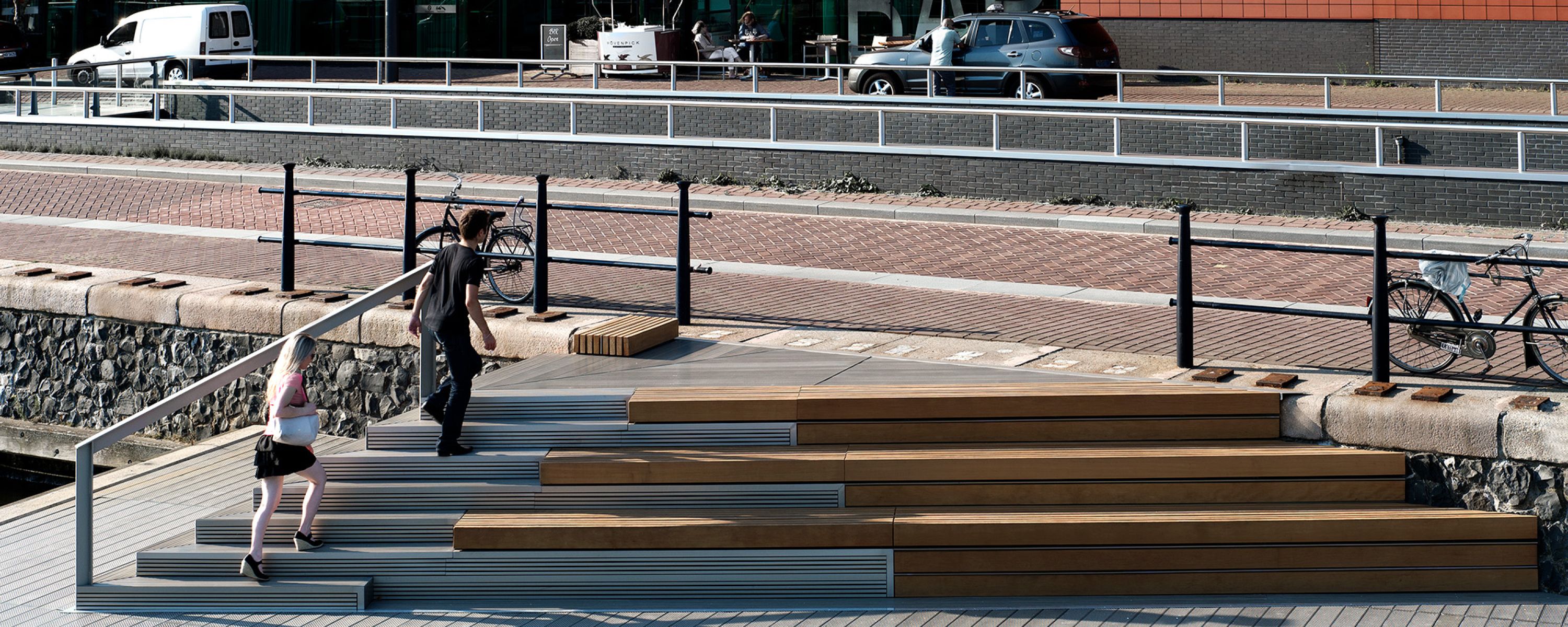 The tribune stair embodies a careful balance between architectural clarity and human experience. Designed and built by studio PROTOTYPE, it grows naturally from its surroundings, merging concept and construction into one cohesive gesture. The combination of bilinga wood and profiled aluminum creates a dialogue between warmth and precision, reflecting the maritime atmosphere of the Zouthaven. Every detail — from the rhythm of the steps to the refined joints — contributes to a sense of crafted simplicity. More than a functional connection, the stair acts as a social landscape: a place to pause, observe, and connect with the city. Its modest geometry guides movement while framing new views of the water and the Amsterdam skyline, offering a timeless public space that celebrates both motion and stillness.