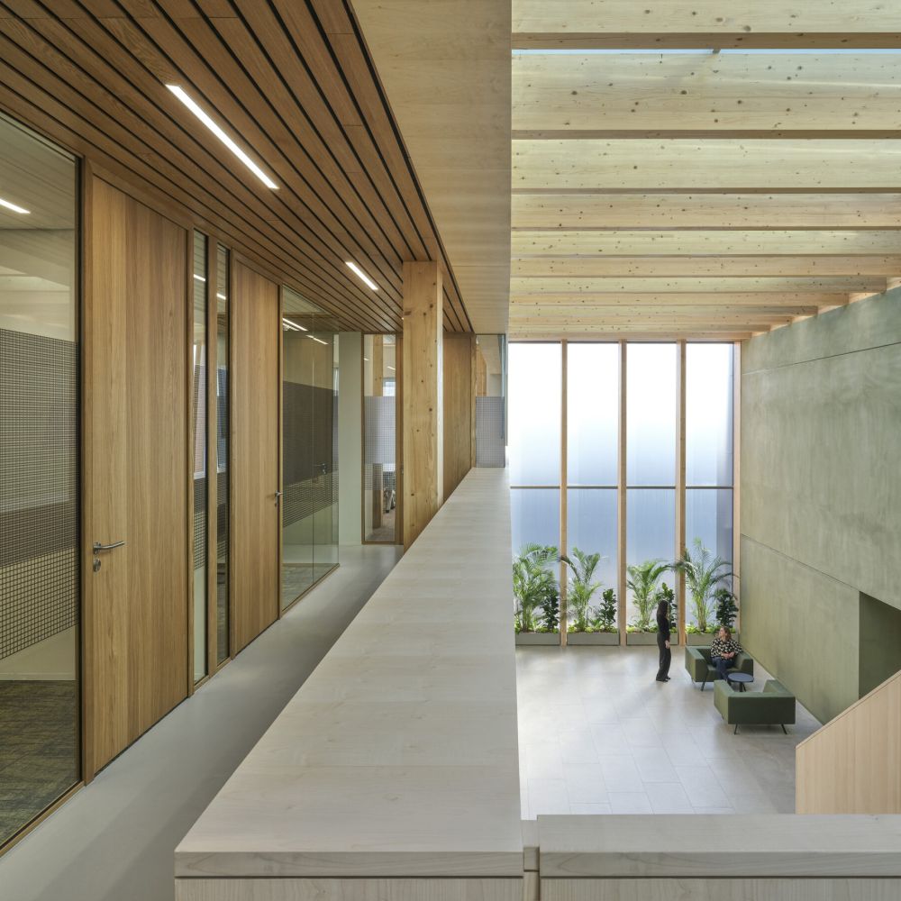 The design is deeply rooted in the surrounding peat polder landscape of Westzaan. The clear building structure is organized around three light courts, which ensure optimal daylight access and a healthy working environment. At the same time, they strengthen the relationship between the building and the surrounding natural area. The nature-inclusive design contributes to biodiversity and climate adaptation.