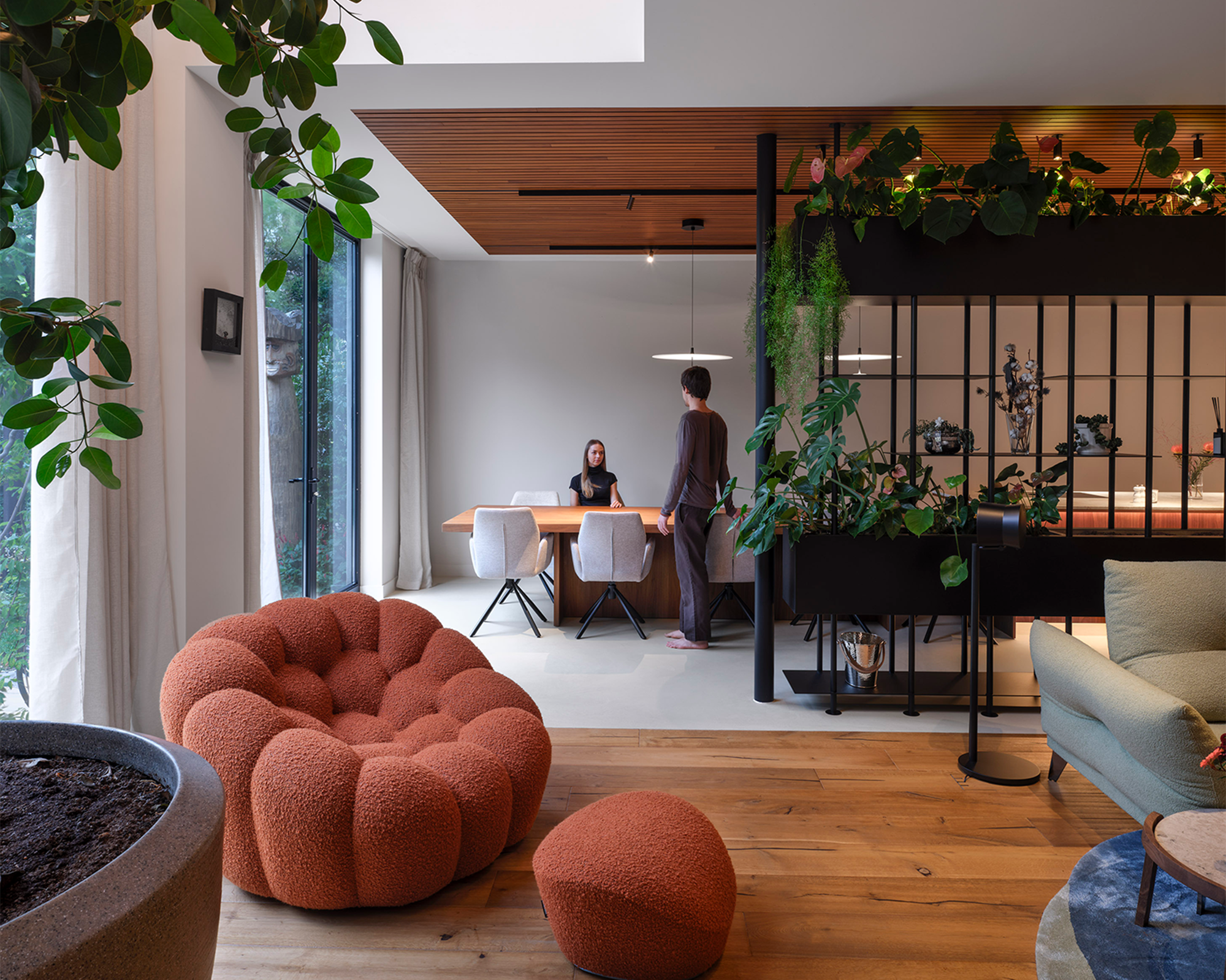 Located deep within the dense urban structure of the Jordaan, Hidden House deliberately withdraws from the city. Invisible from the street and without a conventional urban façade, the dwelling turns entirely inward, opening onto two enclosed gardens. This condition became the starting point for a quiet residential retreat – a protected and green interior world embedded in the heart of Amsterdam.